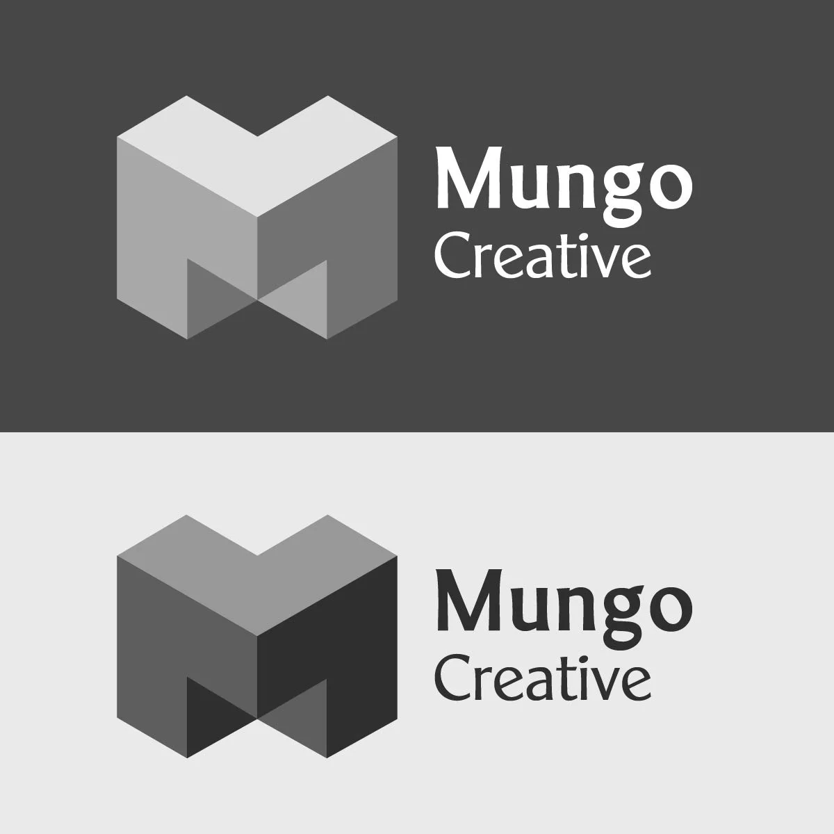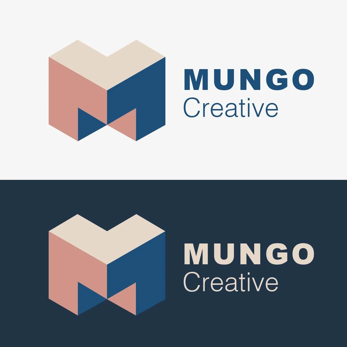 I therefore started working up an idea for a logo that had the essence of 3D at it’s core. Working with the letter M for ‘Mungo’ I designed a 3D orthographic style M. I then played around with different colour schemes and font pairings to find the perfect fit for the client.